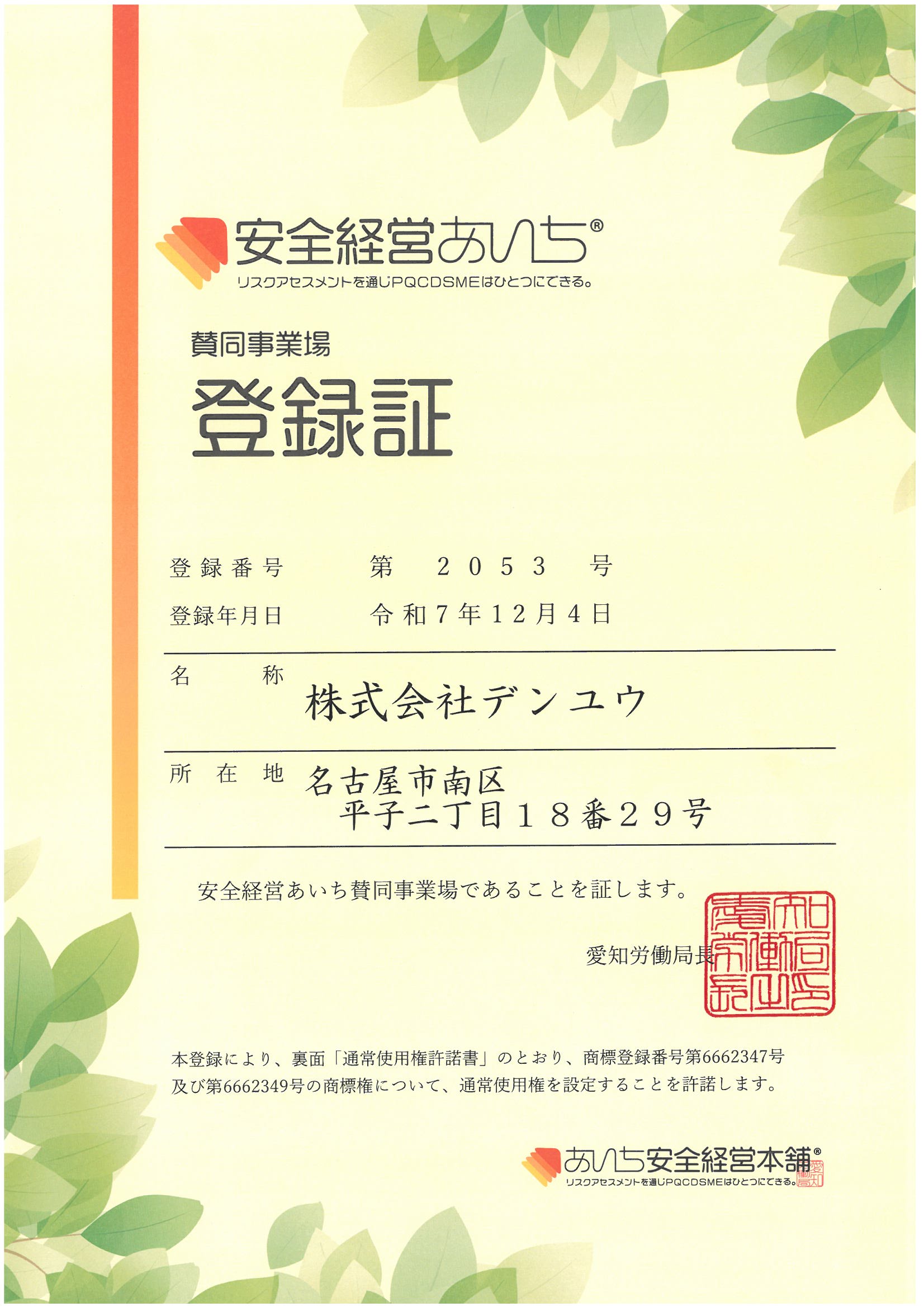 - 愛知県健康経営推進企業登録/健康宣言チャレンジ事業所認定/定期健康診断・健康指導/総合生活保険