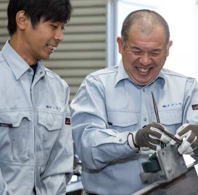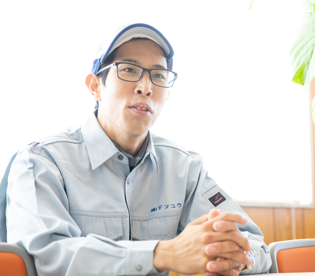 - A. 電気科で学んだことを活かした職場で仕事をして自分の技術を生かすことが夢でした。そのことを当時、学校の先生に相談たところ、デンユウをすすめられ家族とも相談の上、志望しました。