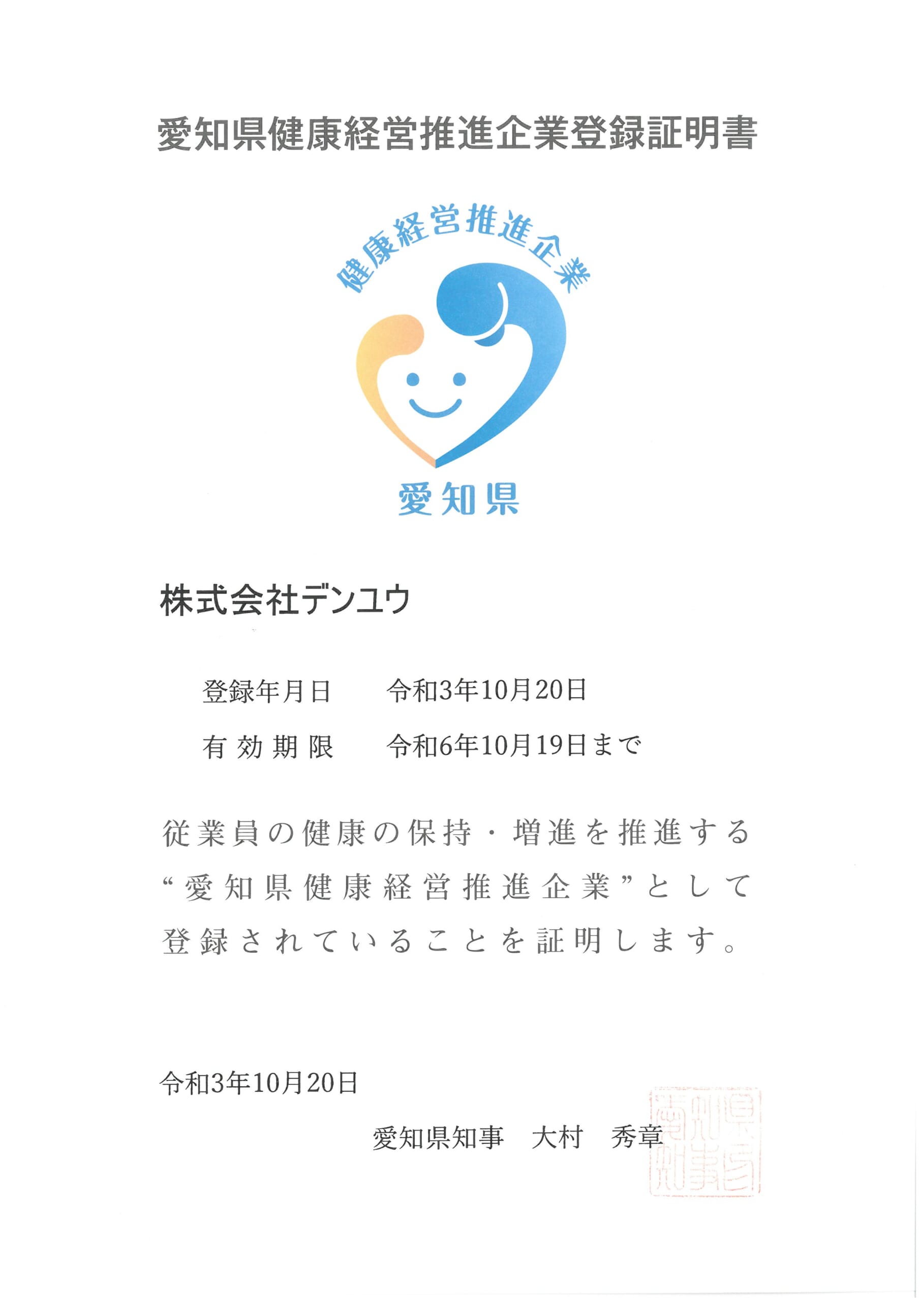 - 愛知県健康経営推進企業登録/健康宣言チャレンジ事業所認定/定期健康診断・健康指導/総合生活保険